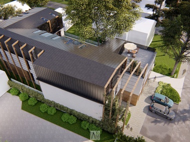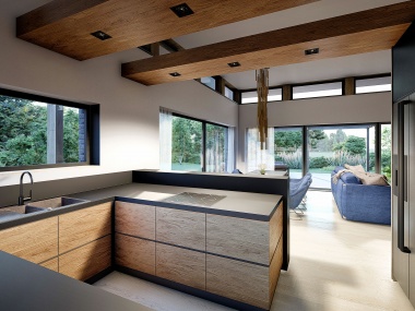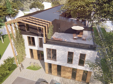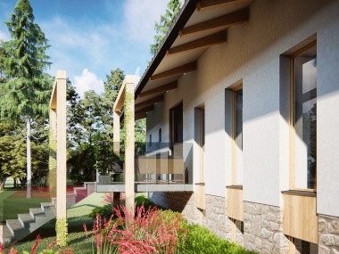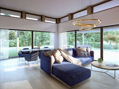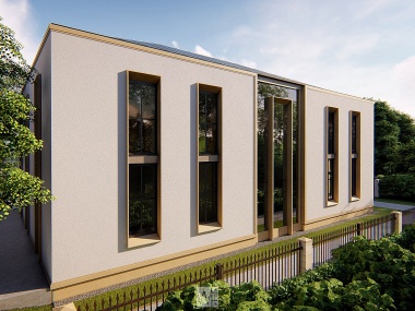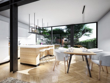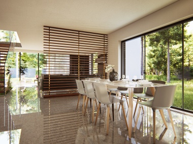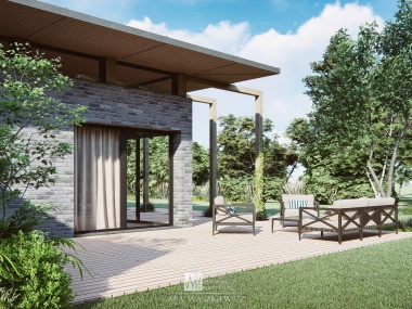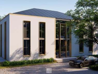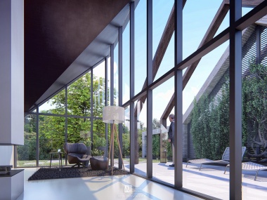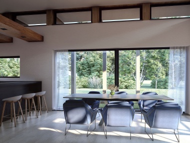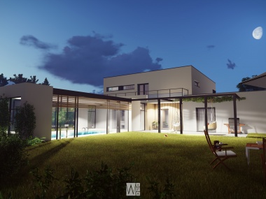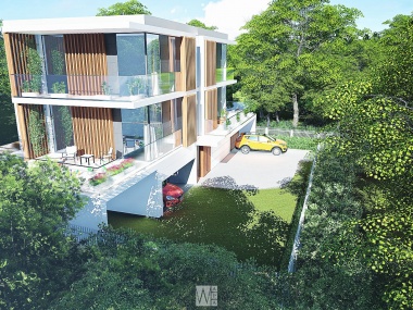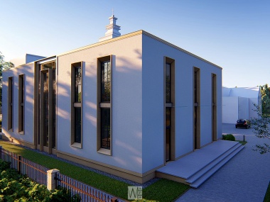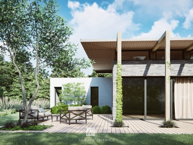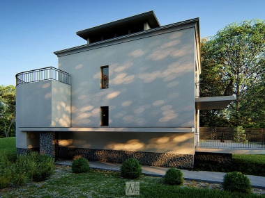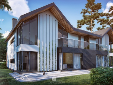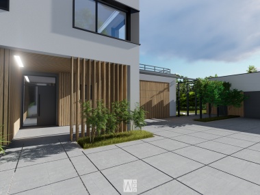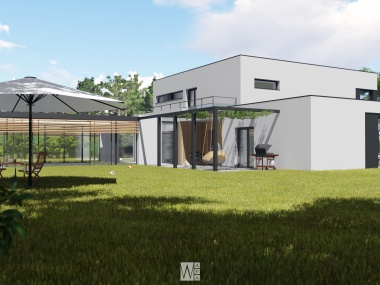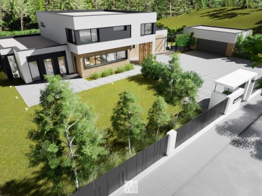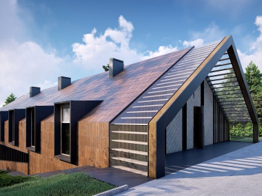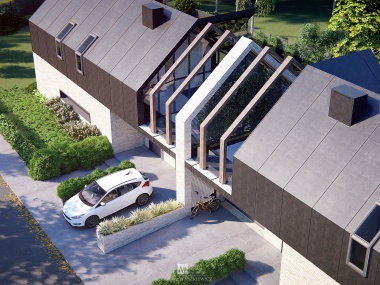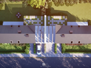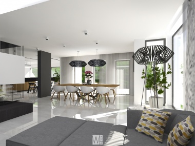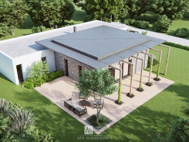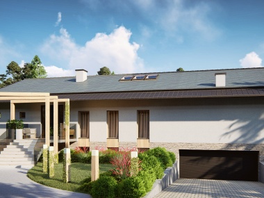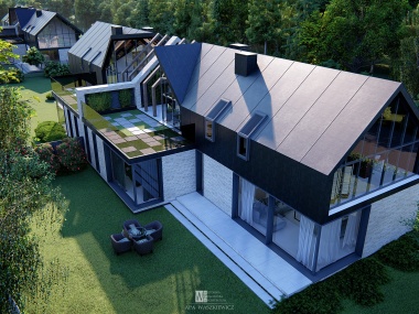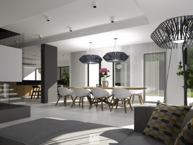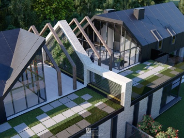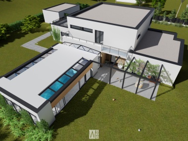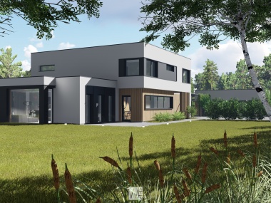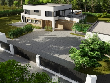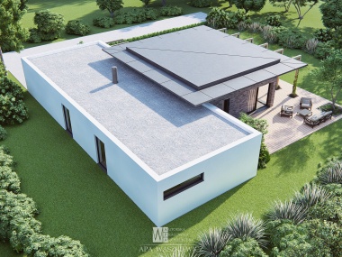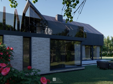zaprojektowany jako dom inteligentny, o niepowtarzalnej architekturze, wzorowej funkcji wewnętrznej dostosowanej do potrzeb przyszłego użytkownika. Projekt indywidualny pozwala odkryć nie tylko możliwości układu i architektury samego budynku, ale też dostosować go do konkretnej działki i podwyższyć jej walory estetyczne, krajobrazowe i funkcjonalne. Dzięki temu dom i działka stają się jednym projektem, działającym w przestrzeni i wypełniającym tę przestrzeń.