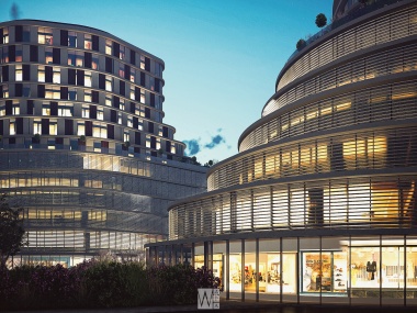 są nierozłączne w podejściu do projektowania. Urbanistyka i jej ukształtowanie pozwala uzyskać ciekawą bryłę dużego założenia, a trafiona wizja elewacji i kształtu budynku podnosi wartość samej urbanistyki. To jest nasza filozofia, by elementy układu -architektura i urbanistyka - tworzyły całość i podnosiły nawzajem swoją wartość.